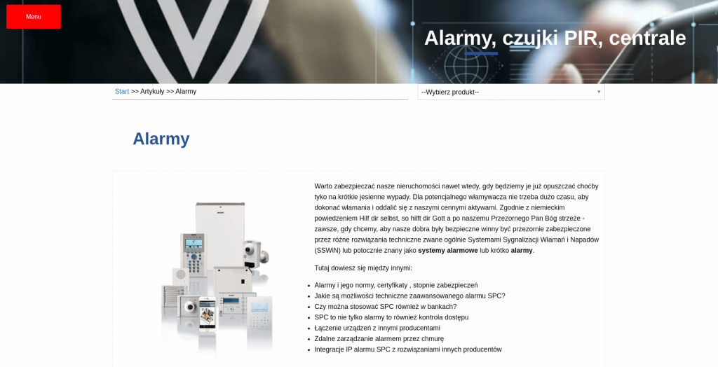 Strona prezentująca produkty z oferty niemieckiej firmy Vanderbilt.